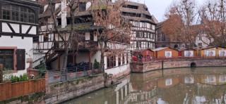 morning, we started our programme with an orientation walk, going first to the picturesque Petite France district with its half-timbered buildings alongside the river. The walk continued past the cathedral and through several squares with Christmas markets. We went our different ways in the afternoon for further exploration, and then that evening Fiona had arranged the now traditional group meal at a very nice restaurant close to the cathedral. As a bonus, two of the Amis d’Ealing who were visiting Strasbourg were able to join us there.